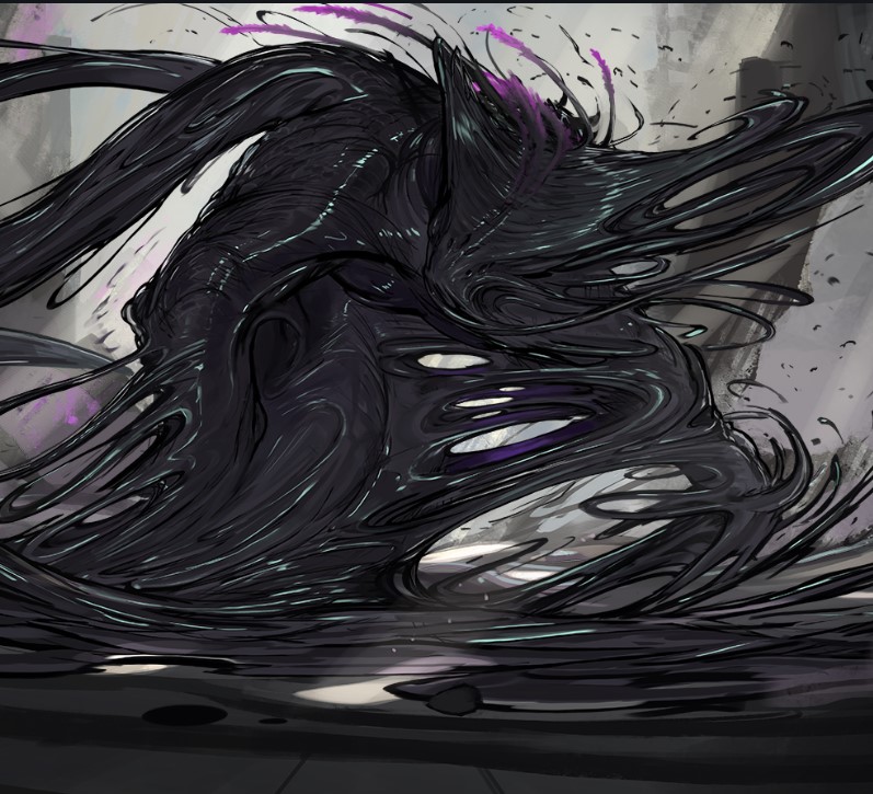 - Black shadowy blurp: Ranged Weapon Attack: + 3 to hit. reach 30ft Hit: 1(d4) acid + 1(d4) necrotic damage. the ground becomes infused in a small shadow pool.